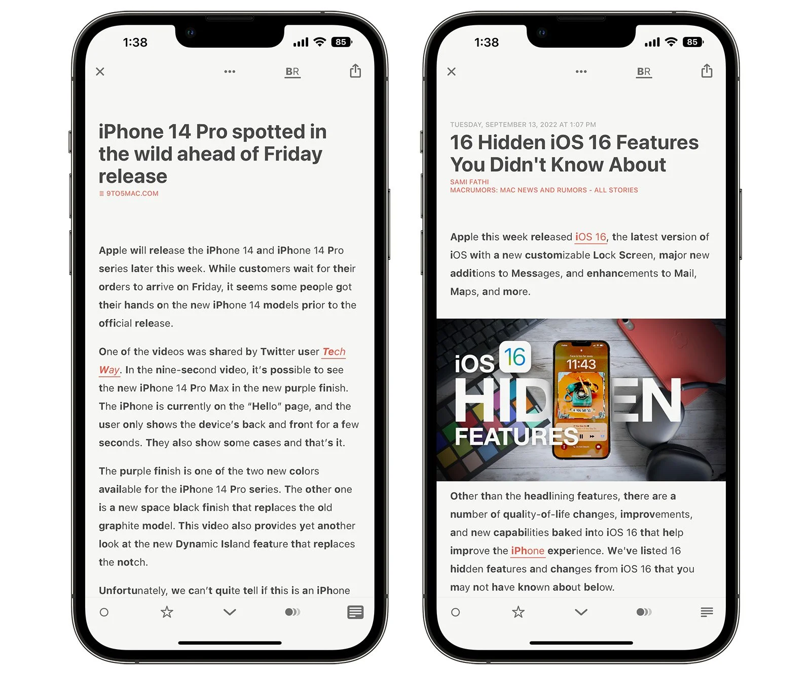 Reeder 5 also has a Bionic Reading feature, which is “a new method facilitating the reading process by guiding the eyes through text with artificial fixation points.” It basically makes the first few letters of each word bold so that you can skim while your brain fills in the blanks. It looks like this: